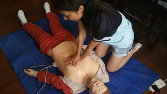 活动最后,团支部各成员依次进行心肺复苏术的练习,学习热情非常高涨,对于实际操作中的疑问也在马院长和急救员陈立豪的指导下一一得到了答案。