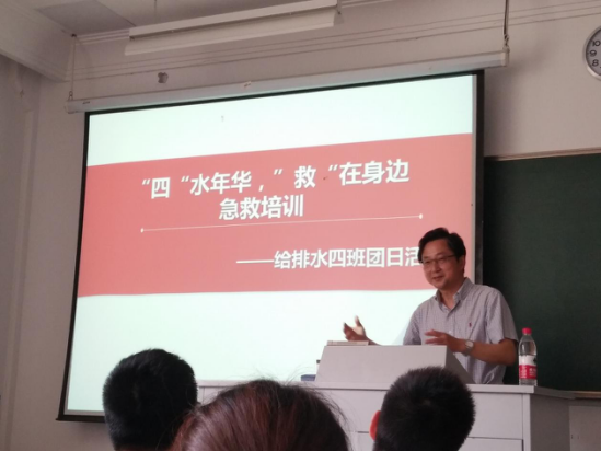 为更好的培育和践行社会主义核心价值观,同时积极响应2017年江苏省卫生计生委重点工作目标要求,提升大学生应急素养和急救互救能力,培养出更多具备较高综合素质的青年志愿者,2014级给排水四班团支部于2017年6月2日开展了以“四”水年华,“救”在身边为主题的团日活动。为此,特地邀请了欧洲杯赛程 校医院副院长马红兵前来详细讲解各项急救知识,同时还邀请前欧洲杯赛程 红十字会成员陈立豪进行实际操作演练。