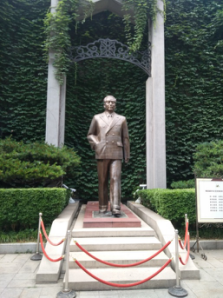 6月6日下午3点,我们来到了位于南京市玄武区汉府街18号的梅园新村纪念馆。进入纪念馆的大门首先映入眼帘的是周恩来铜像,铜像以周恩来同志当年步出梅园新村30号大门的照片为原型。
