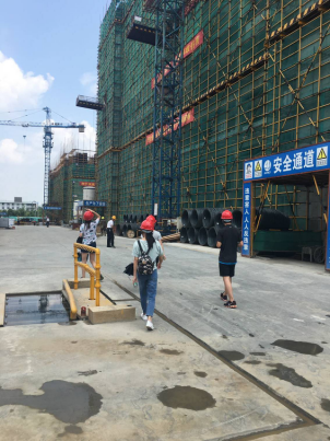 之后,成员到施工现场进行了实地参观。整个建设场地干净清爽,丝毫没有奇怪的气味。最后,全体成员和于经理作了告别,在门口进行了拍照留念,离开工地。