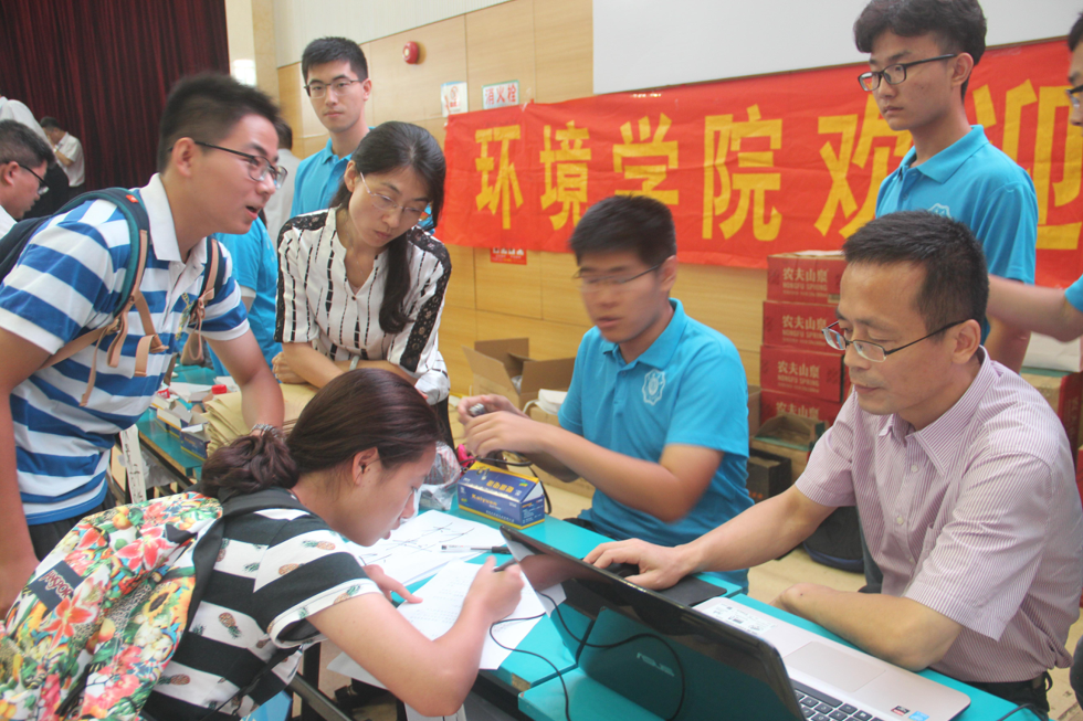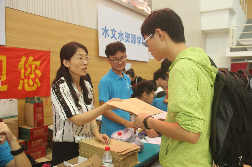 王沛芳院长等一行人首先来到文体中心对16级迎新工作志愿者同学表示慰问,向现场学生和家长表示欢迎,介绍了欧洲杯赛程 的具体情况,并向家长了解学生的成长经历。王芳沛院长和笪学军书记亲自为新生发放入学相关资料。