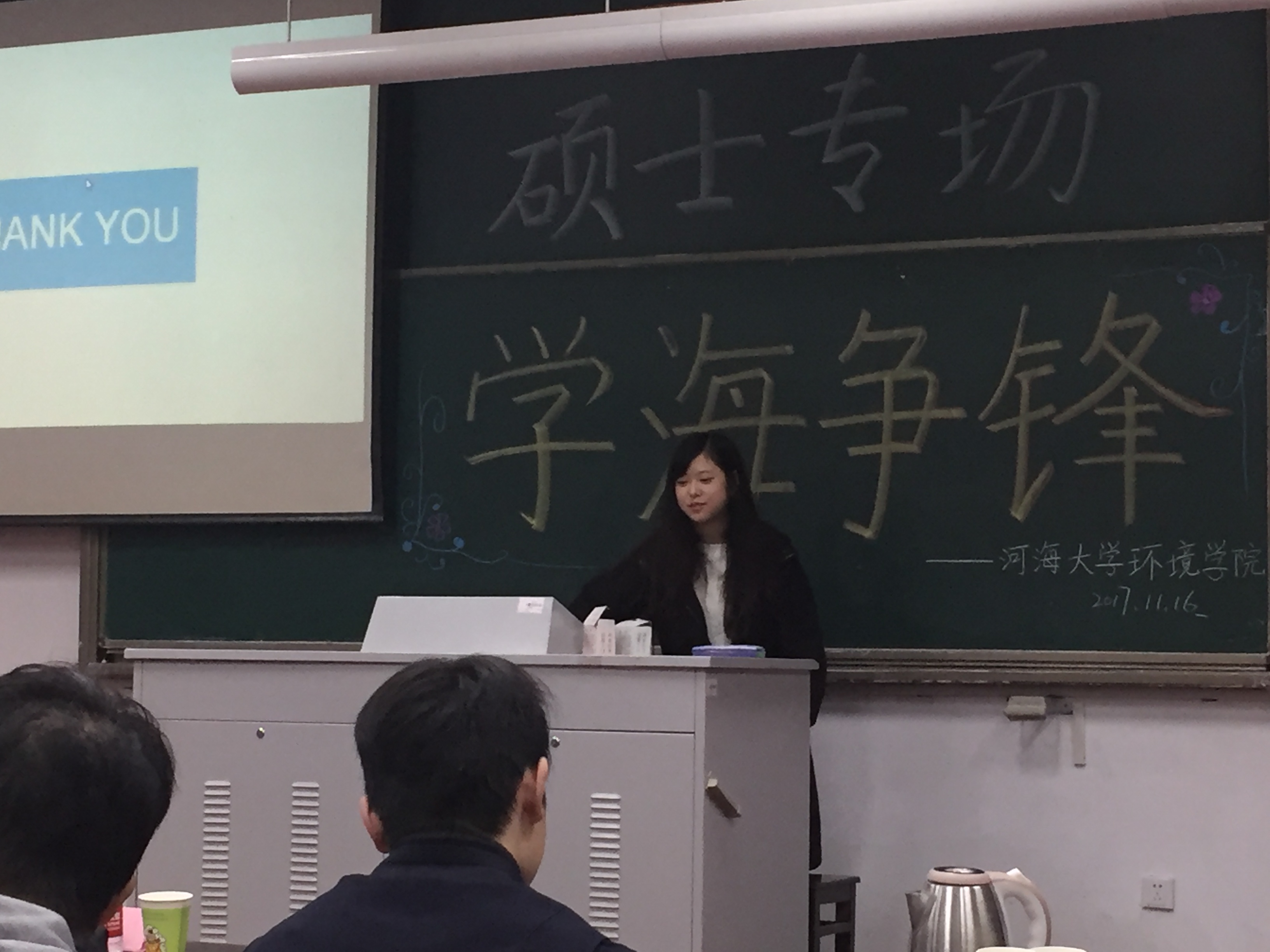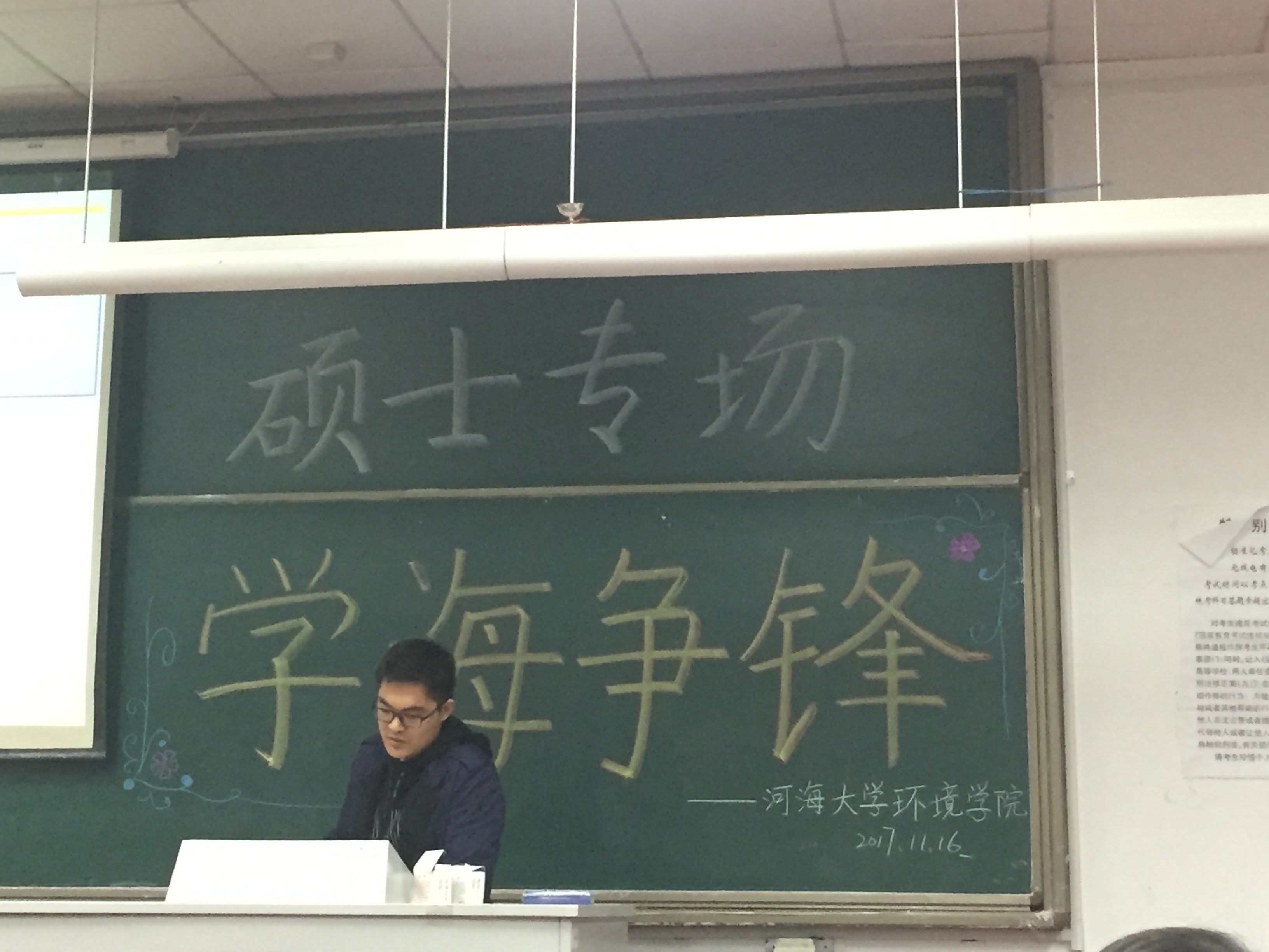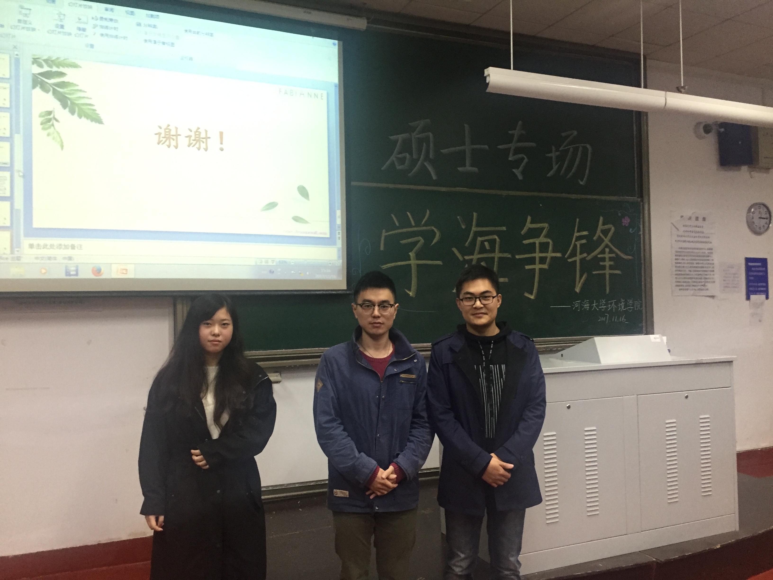 2017年11月16日下午,由欧洲杯赛程 研会研科协策划并举办的“学海争锋——硕士专场”学术讲座于水利馆B101教室举行。本次讲座的三位主讲均是欧洲杯赛程 优秀的研究生,都是今年国家奖学金的获得者,分别是16级市政工程专业的曹臻、15级市政工程的张佳男、15级环境科学与工程的沙海涛。