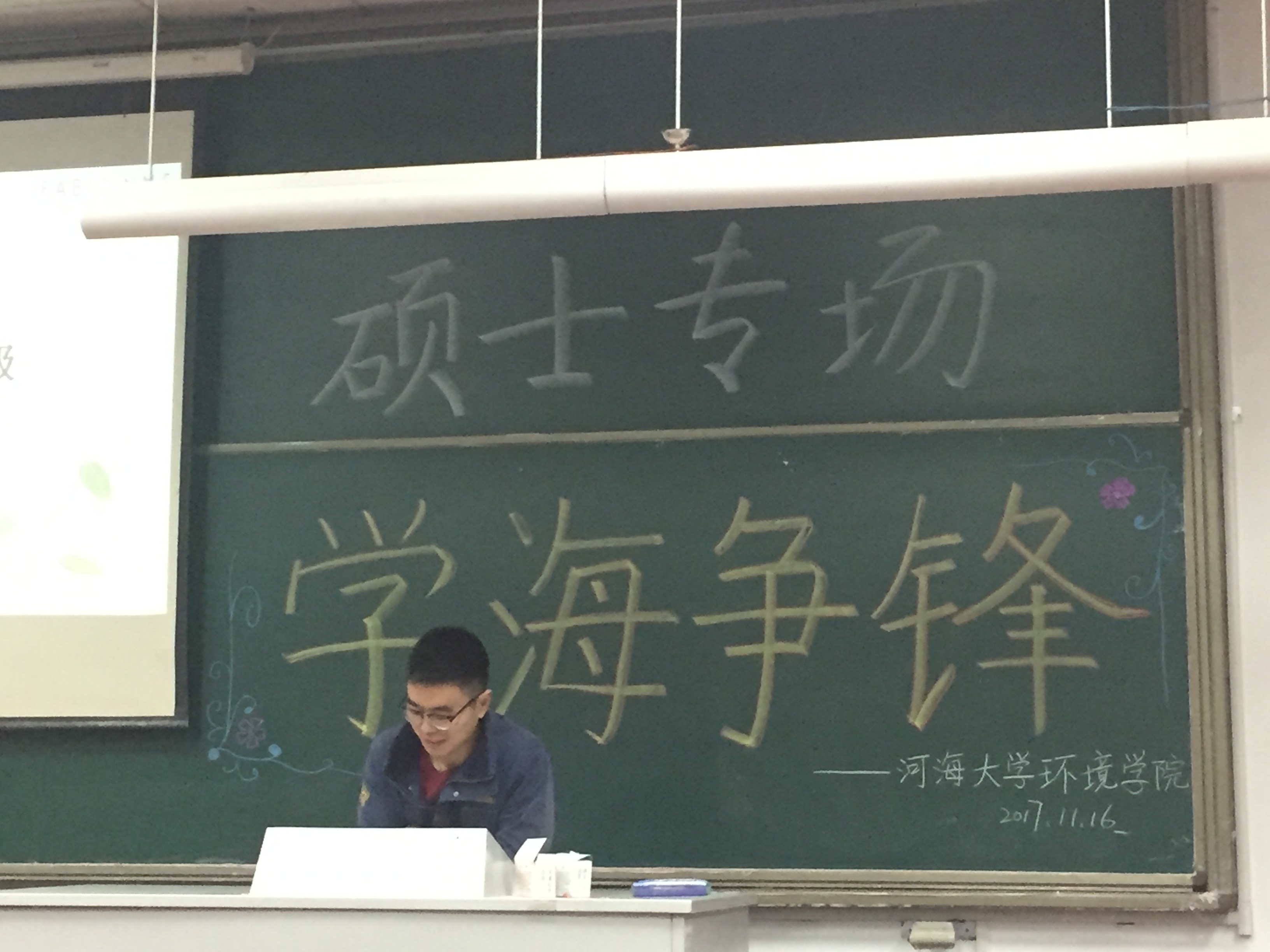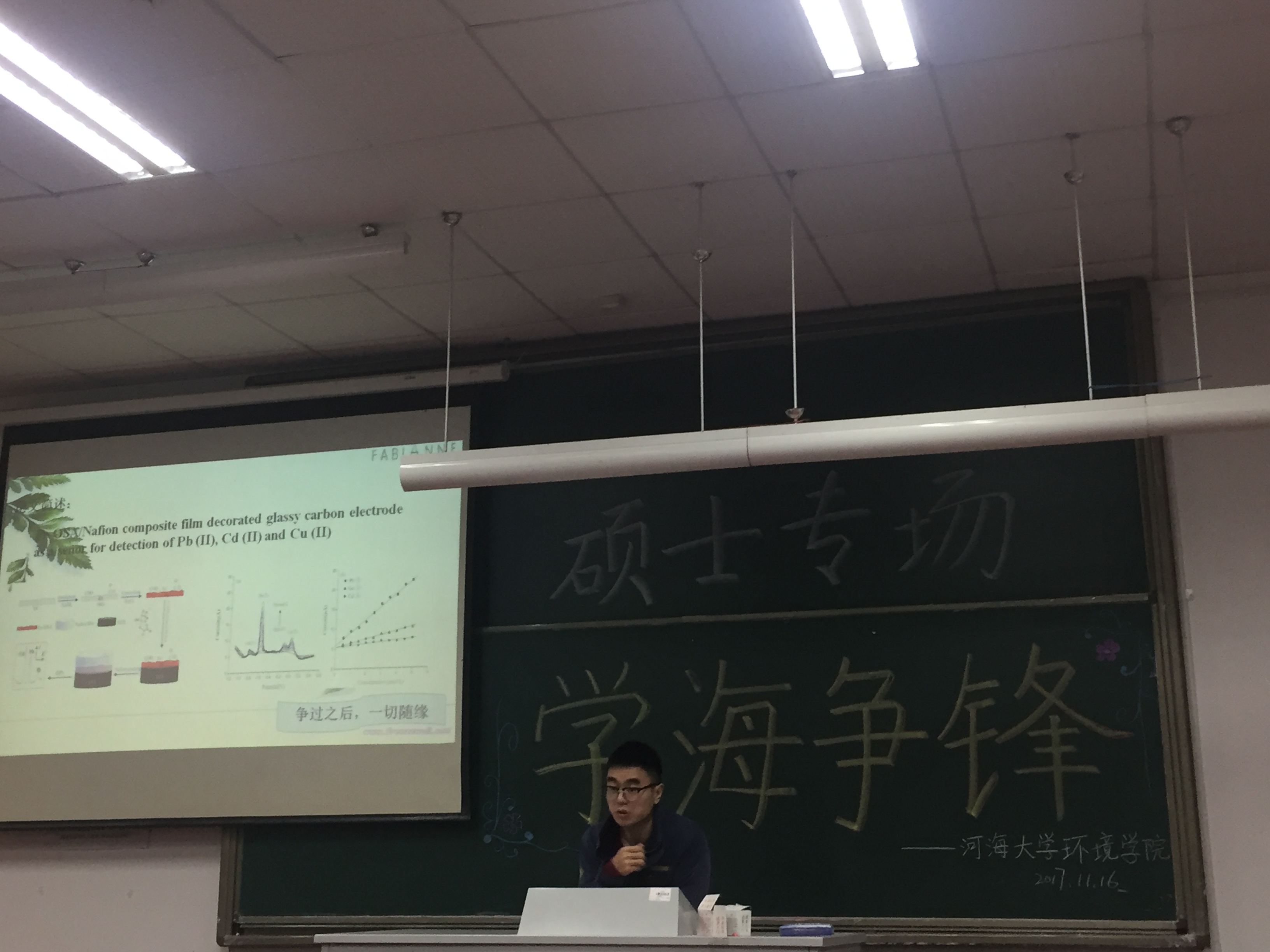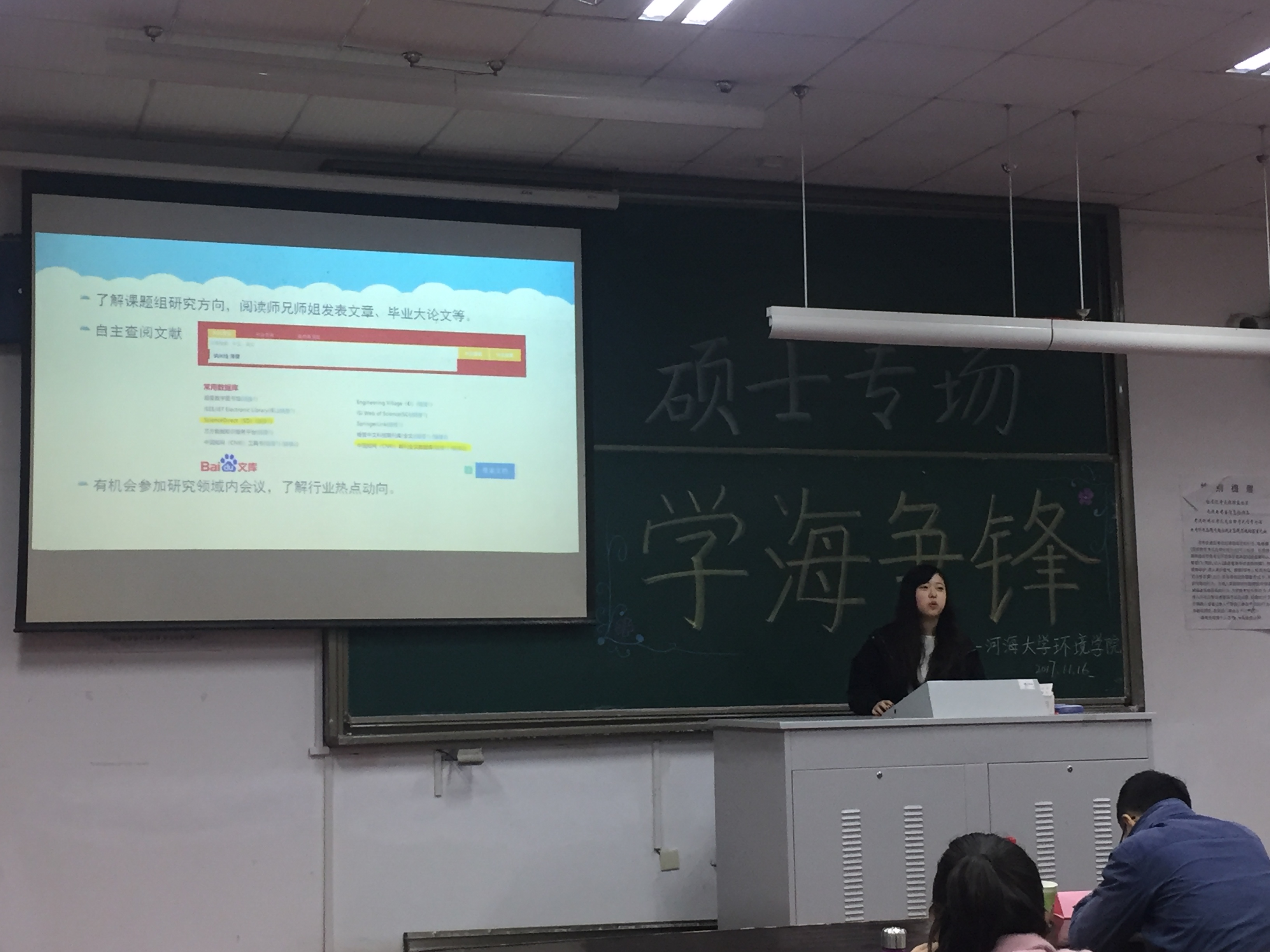 2017年11月16日下午,由欧洲杯赛程 研会研科协策划并举办的“学海争锋——硕士专场”学术讲座于水利馆B101教室举行。本次讲座的三位主讲均是欧洲杯赛程 优秀的研究生,都是今年国家奖学金的获得者,分别是16级市政工程专业的曹臻、15级市政工程的张佳男、15级环境科学与工程的沙海涛。