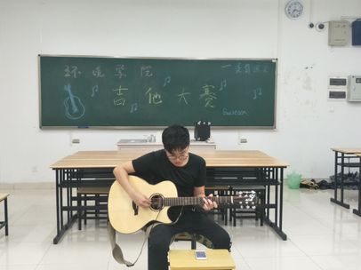 5月18日晚,美育课堂吉他班最后一节课在博b301进行,这节课主讲老师龙思丞为大家举办了环境院第一届吉他大赛。大家签到完后,老师为大家介绍了比赛规则。本次比赛按照签到表顺序进行选手展演,时长为3-6分钟,比赛采取评委打分制,最后评出一二三等奖各一名,优秀学员三名,最佳进步奖一名,均有学院颁发的证书与学时奖励,同时奖励琴弦、变调夹等诸多奖品。让我们来看看大家的表现吧。