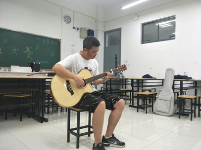 17级的李卓芫同学说:自大一开学龙哥就在音乐上指导我很多,唱歌比赛什么的都是他带着的,这学期开了这个美育吉他班,龙哥也是和我们说只是想和喜欢这门乐器的人多交流,把自己会的都教给大家。我喜欢音乐,以前也一直想学吉他,上学期在吉他社因为课程少,也没学到太多东西,但是短短一个月,在龙哥这里却学到了很多,也感觉自己进步还算挺大,可以说是真的很开心,就算美育课堂结束了,以后也要向龙哥多请教学习,他真的很好,感谢龙哥!