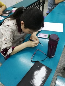 17级王新梓说:没想到书法课这么快就结束了,很开心能够参与到书法课的学习中。虽然自己曾经没有专门练习过书法,但是也会有自己为了使字变得好看而总结的一些规律,上书法课的时候,听到学长讲到的一些技巧方法和自己的总结不谋而合时,感觉非常有意义,也让我更加有信心在课程结束后自己对书法琢磨练习,在最后两节课,学长对于篆刻进行了简单的介绍,之后大家都很认真的篆刻了自己的名字。写一份书法作品,印上自己的名字,那份成就感是刷多少微博,游戏通了多少关所感受不到的,希望自己以后也能在闲暇时光多练练书法,玩玩篆刻,不亦乐乎。