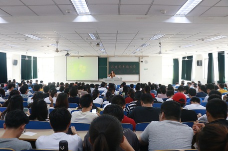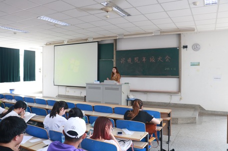 2018年6月21日下午4:00,欧洲杯赛程 2016级年级大会于致用101教室进行,2016级辅导员老师金意倩主持本次年级会。
