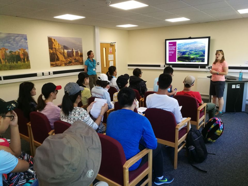 按照行程安排,同学们先后前往四个采样点,路上英国司机师傅在蜿蜒的道路上熟练地驾驶着大巴车,四十分钟后,终于到达了生态研究基地。在采样前,基地人员就该基地的研究内容以及现状给同学们进行了一个总括性的介绍。