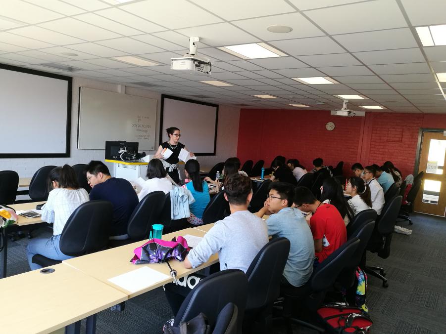 上午9点,同学们在Hugh Owen教室集合,上午的课程是由亚伯国际政治系的老师讲授的关于民族主义的课程,Huw Lewis教授给同学们讲解了什么是民族主义,并通过举例的方式向同学们介绍了不同国家不同种族的民族主义,让同学们对于民族主义有了更深刻的了解。上午11点是英语语言学习课程,Yvonne教授紧接着上节课的话题,和同学们讨论了对于民族主义的认识,加深了同学们对上节课程所学知识的印象,灵活的授课方式获得了大家的一致认可。