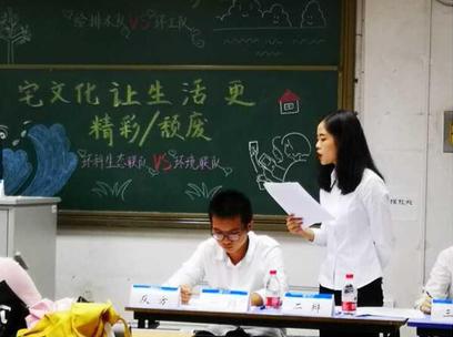 经过短暂的休息后,第二场辩论赛开始了。本场的辩题是“宅文化让生活更精彩/颓废”,正方辩手来自由环境科学与环境生态的同学们组成的环科生态联队,他们认为,宅文化让生活更精彩。而反方辩手来自由环境科学与工程(中外)的同学们组成的环境联队,他们主张宅文化让生活更颓废。