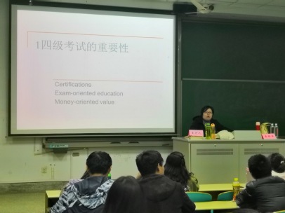 法学院的黄雅屏副教授担任讲师,向同学们讲解四级考试的相关要点。