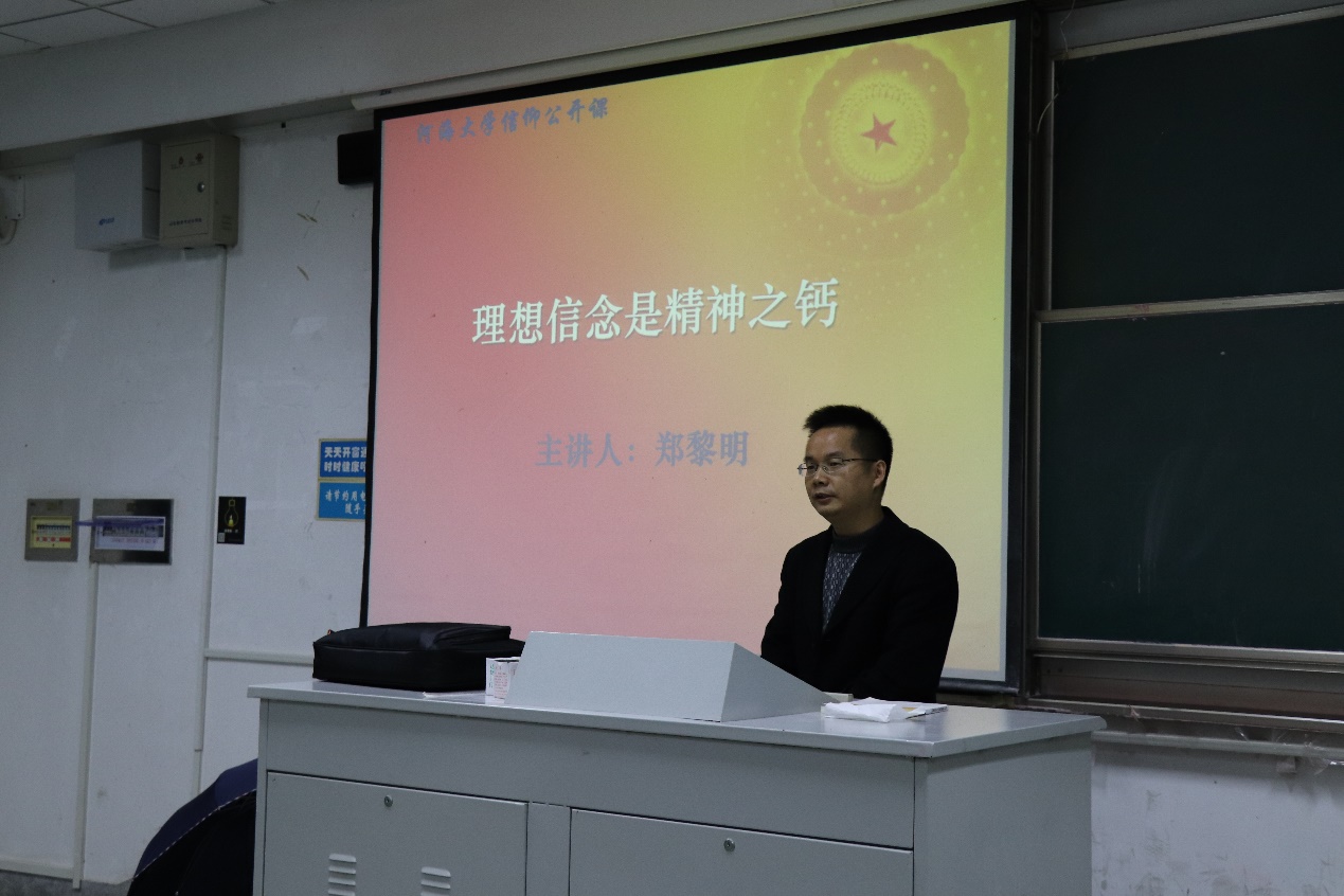 2018年12月4日3:50,欧洲杯赛程 在致高A116教室举办“信仰公开课”系列讲座。本次讲座邀请了欧洲杯赛程 马克思主义学院的郑黎明副教授作为主讲人,郑教授围绕“理想信念是精神之钙”这一主题,从其内涵等方面讲述了信念对于当代大学生的重要性,并且为同学们今后的学习和生活提出了一些建议。