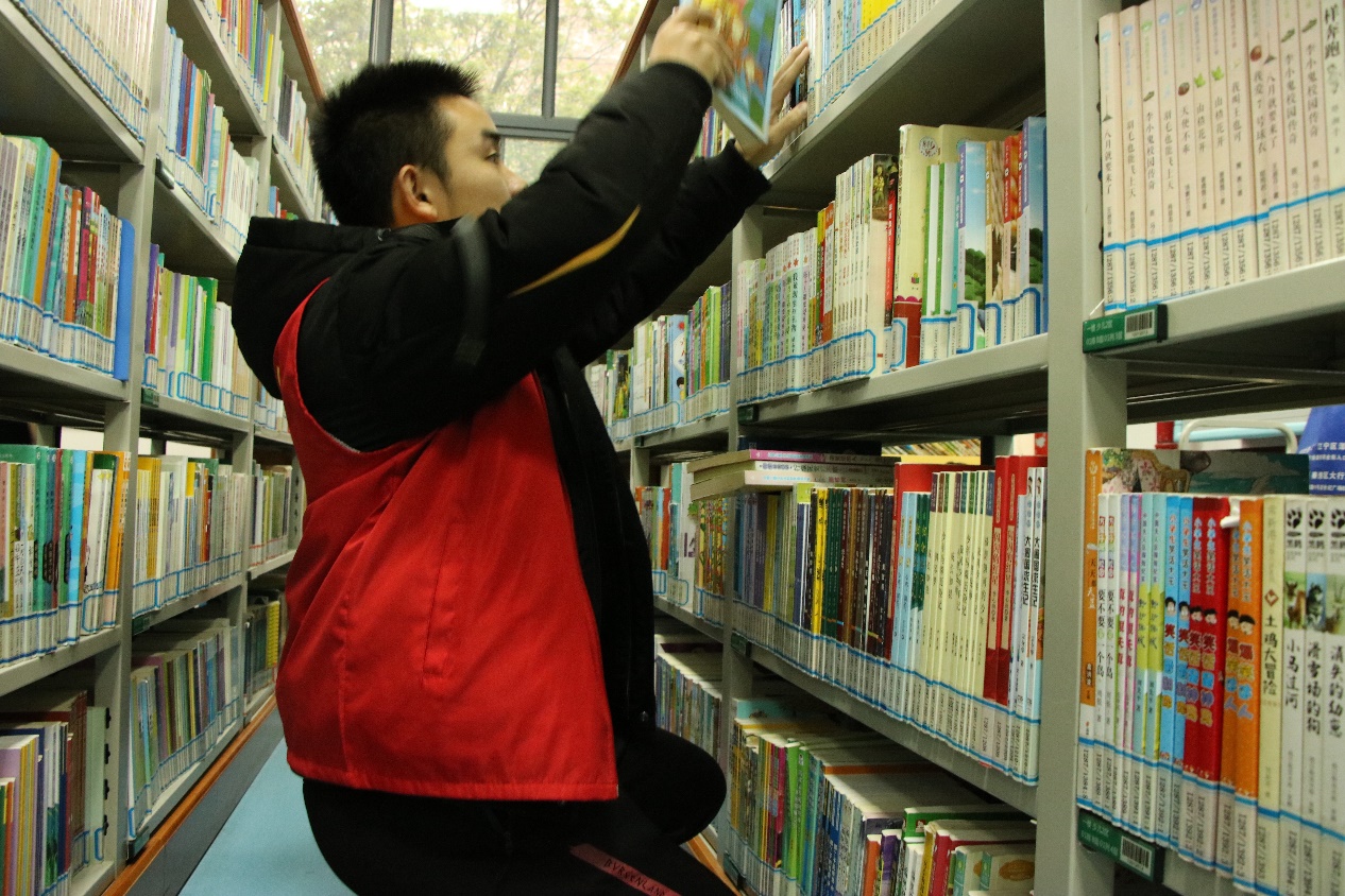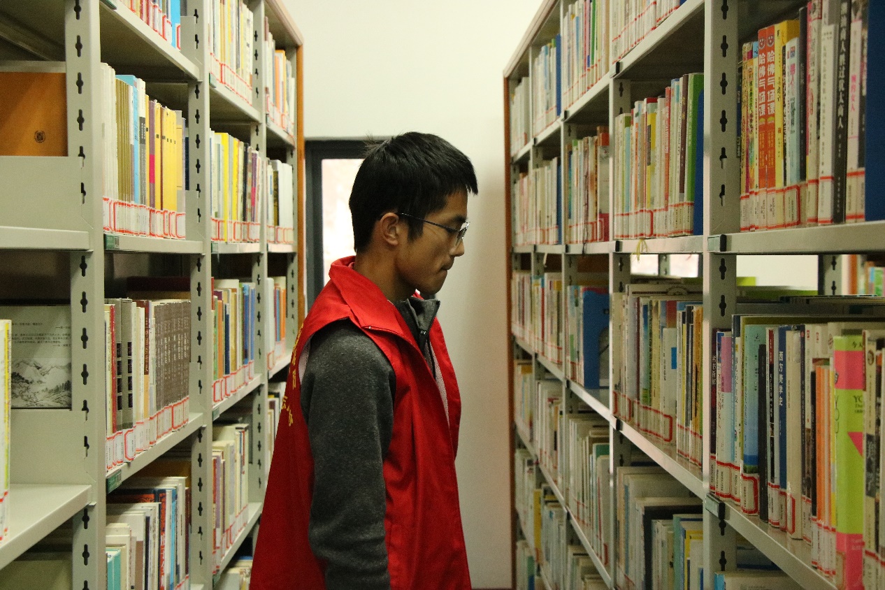 在近三个小时的反复寻觅查找中,志愿者们动作越发娴熟,对于寻找书籍编码所在书架也越发轻车熟路。在书架间穿梭的矫健志愿者身影是图书馆阅读区内一道美丽的风景线。