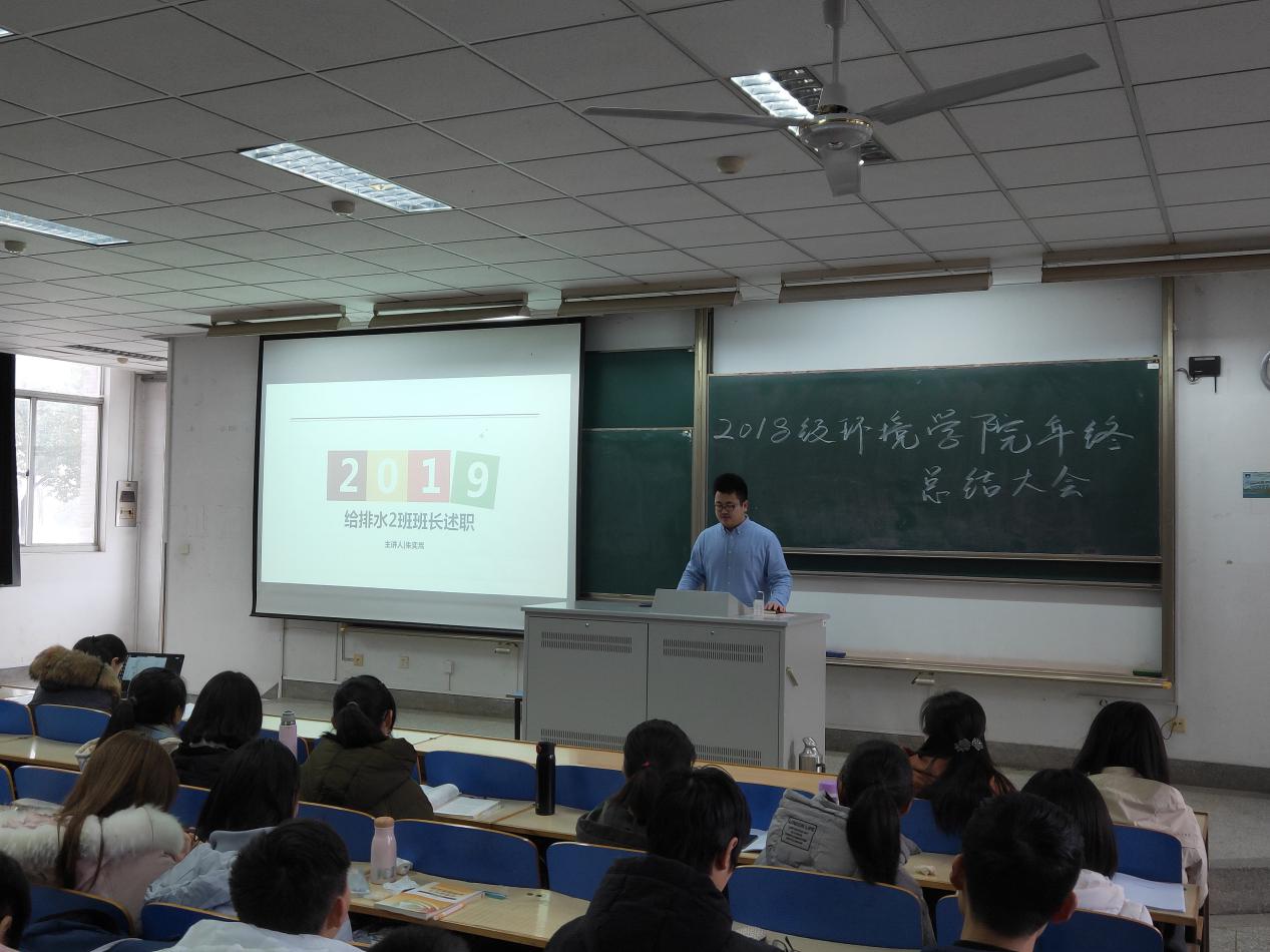 朱奕嵩同学从班级学风建设、文化建设和未来展望三个角度对学年进行了总结。给排水二班通过大家共同的努力和丰富的活动,建立了属于自己的班级文化。