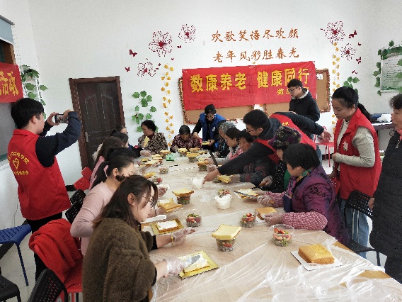 下午两点,参与活动的老人们陆续到场。在蛋糕师的指导下,老人们开始动手制作蛋糕。我们的志愿者也在老人们需要帮助时及时出现,或帮拿奶油,或帮助他们将奶油涂到蛋糕胚上,或帮助老人们将水果块铺在蛋糕胚上。他们的付出也换来了老人们幸福的笑容。
