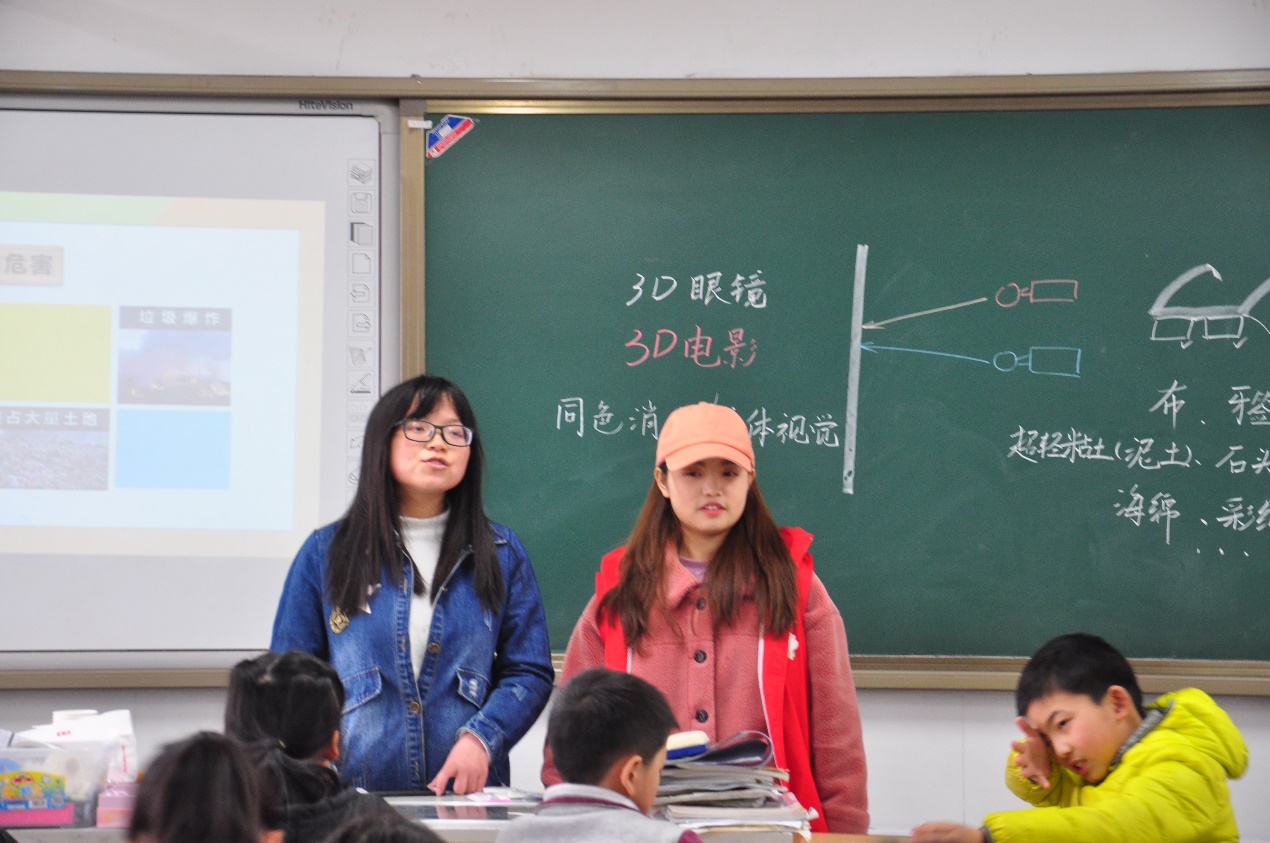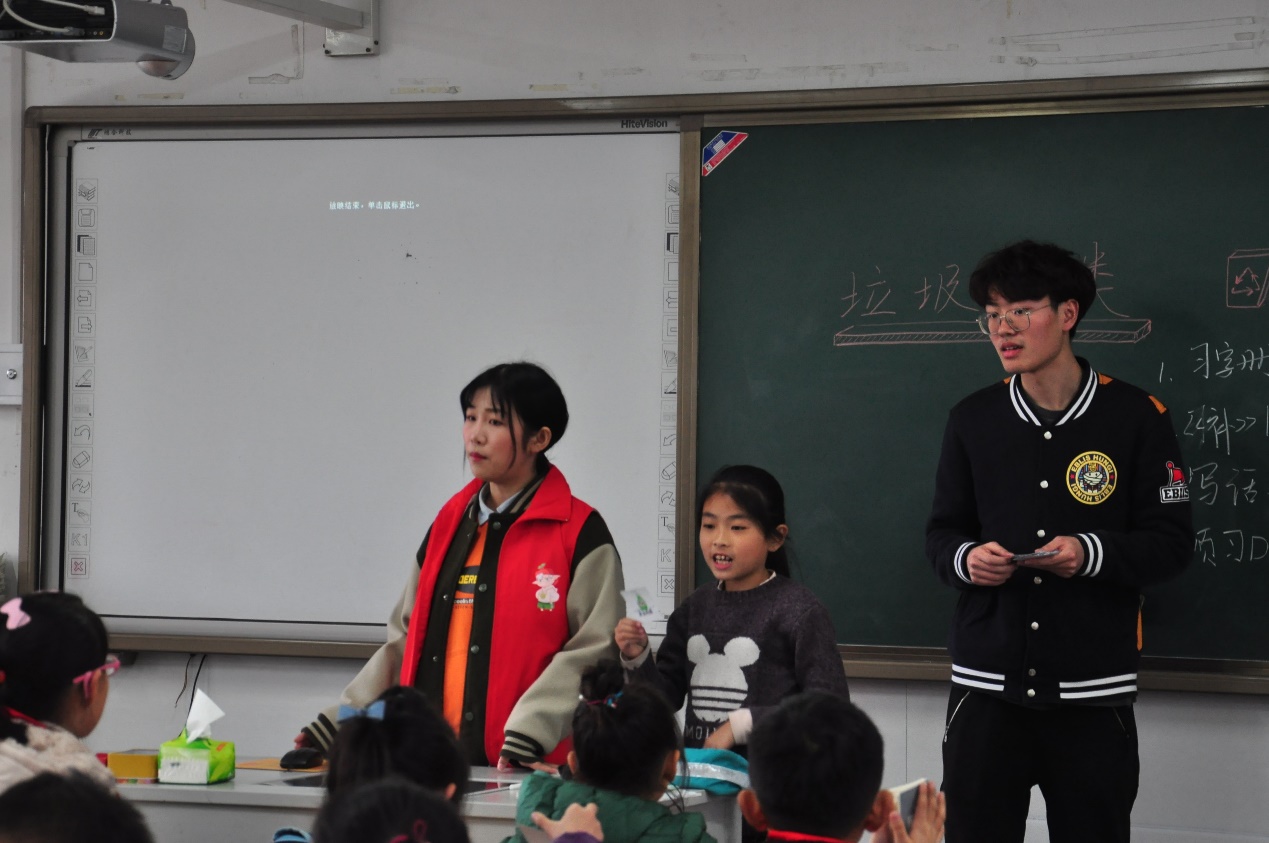 在课堂上,面对积极踊跃的小朋友们,志愿者们也被点燃了热情。讲师不仅详细介绍了垃圾分类的相关知识,还和大家分享了自己身边废物利用的实例。
