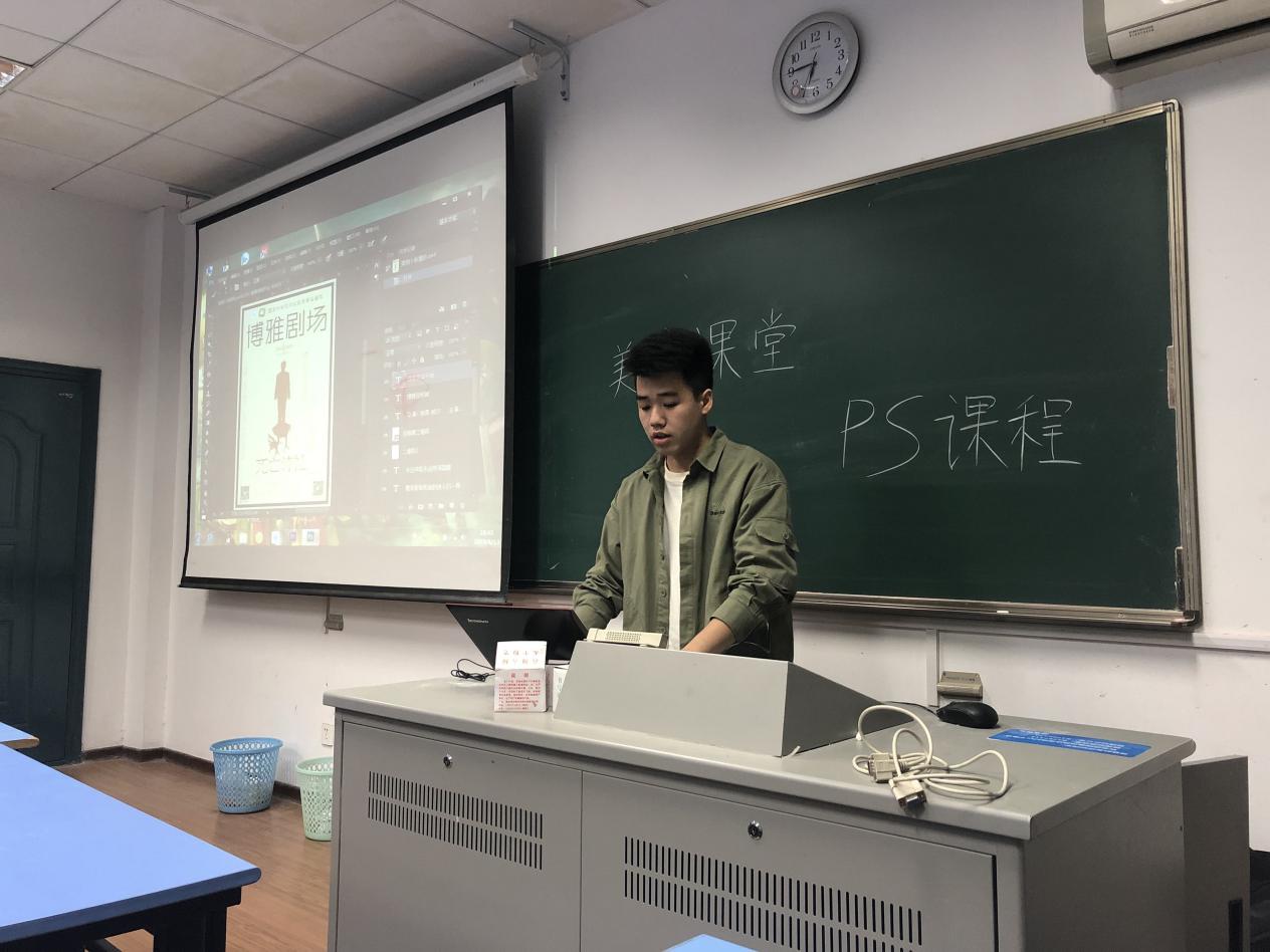 本次课程面向欧洲杯赛程 16级全体学生,具有小班教学的特色,22个人组成了一个兴趣班,这门课程的主讲人是16级环工二班的郑裕盛。郑裕盛曾在博雅任职两年,负责博雅剧场的海报制作,还曾在大名映像婚纱摄影工作室实习,能够熟练地掌握PS软件,具有丰富的专业知识与实战经历。