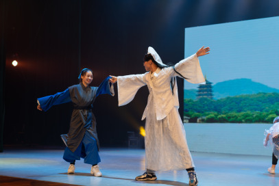 不够形象的反串、简单形象的道具、夸张搞笑的动作,给排水1班同学们带来的《白蛇后传》一开场便赢得了同学们的阵阵笑声。断桥相会后,同学们又脱去古装,以现代的方式,再一次诠释了“千年等一回”。“千年等一回”,说的是白娘子与许仙的爱情,同样,也是代表着同学们相聚相爱的缘分。