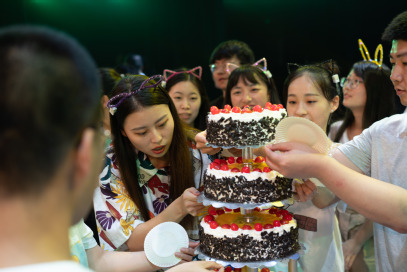 当毕业蛋糕被推上舞台,毕业晚会也接近尾声了。同窗四载情意长,即将毕业天各方。祝愿未来赴康庄,鹏程万里豪气扬。在主持人温暖煽情的结束语中,本次晚会圆满结束。