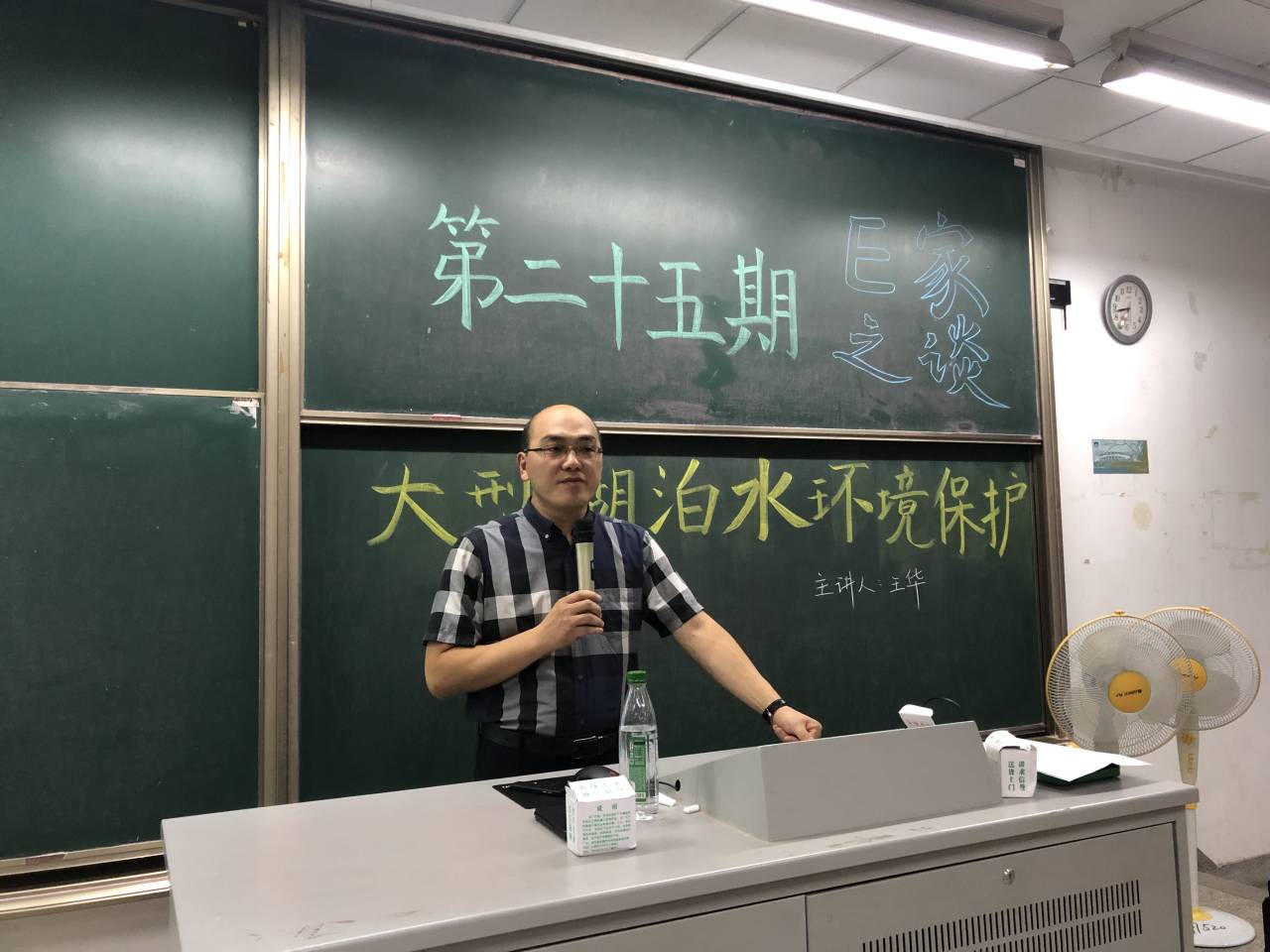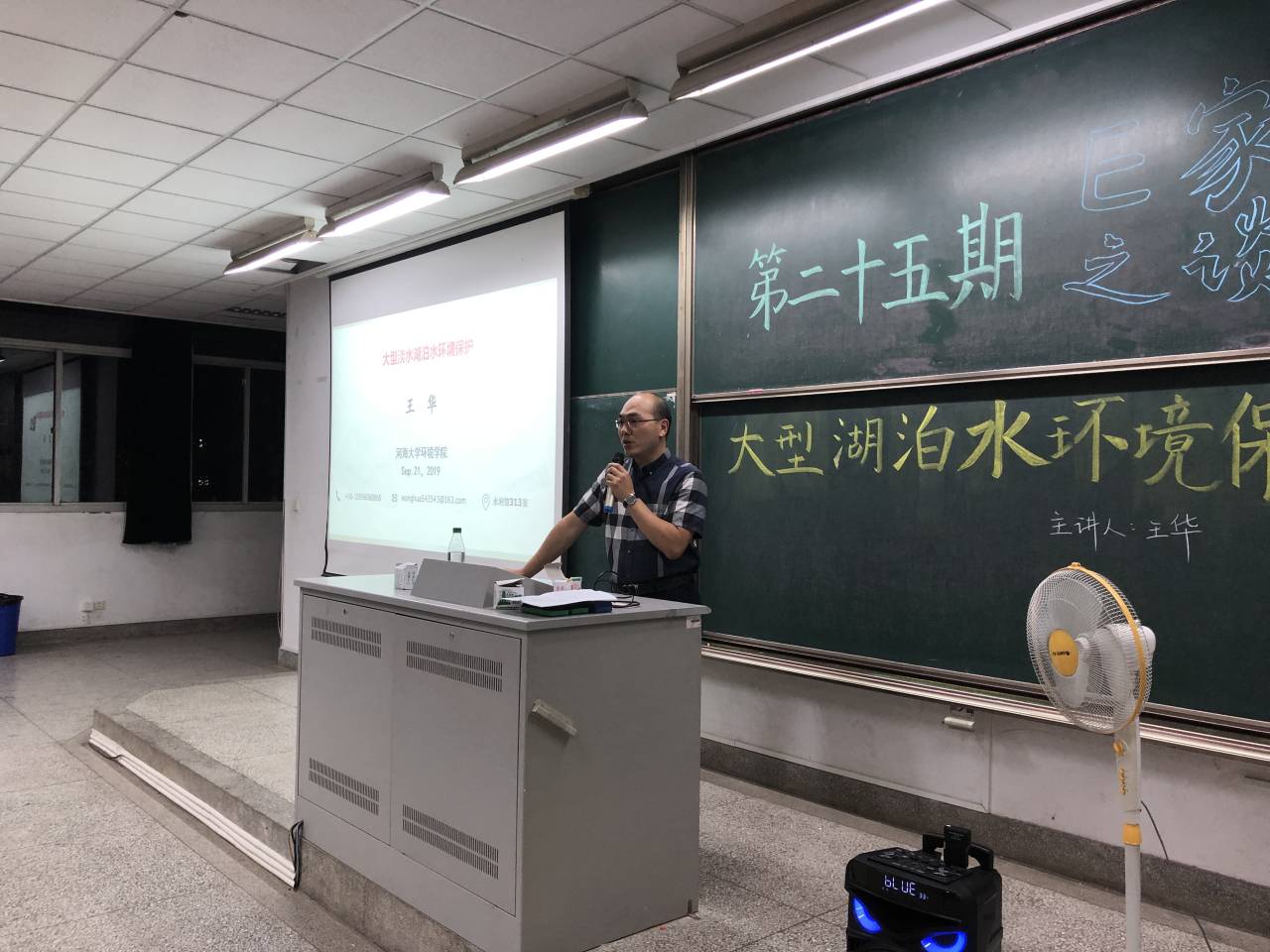 2019年9月21日晚上6:30,欧洲杯赛程 学生科学技术学会邀请欧洲杯赛程 环境科学与工程博士生导师王华教授在致用楼101举办了第二十五期E家之谈“大型湖泊水环境保护”讲座。
