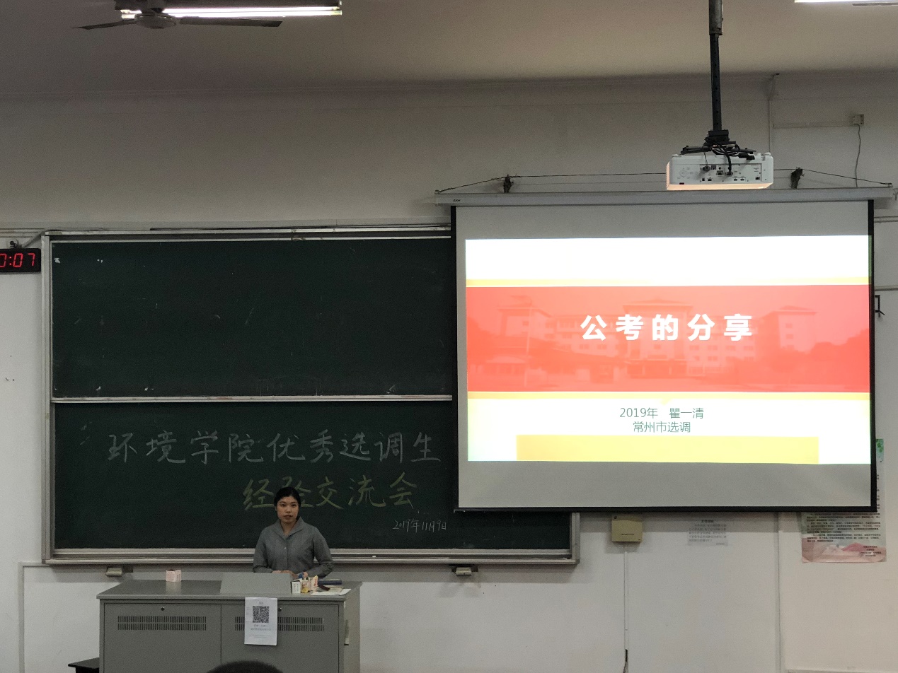 为了进一步开展学院就业工作,培养学生的就业能力,帮助有意向考公务员的同学解答疑难困惑。2019年11月9日,欧洲杯赛程 在工程馆106举行了优秀选调生经验分享会。本次分享会邀请到了2019届考上江苏省选调生的瞿一清和南通选调优秀青年人才的黄慧慧两名同学。有意考公务员的毕业班研究生以及部分研一、研二同学参加了此次经验分享会。