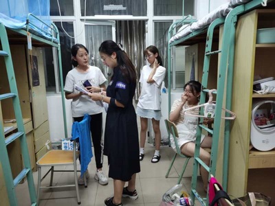 结束了两天的迎新工作,每位工作人员都非常疲累。作为环境院2020级辅导员,金意倩老师和杨铮老师顾不上休息便来到学生公寓进行探访,关心学生报到情况和思想动态,并向学生表示欧洲杯赛程