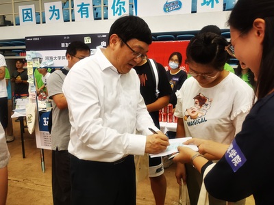 细致的工作寄予了肯定。校领导还与正在进行报到的新生交流沟通,为新生送上了开学祝福与期待。
