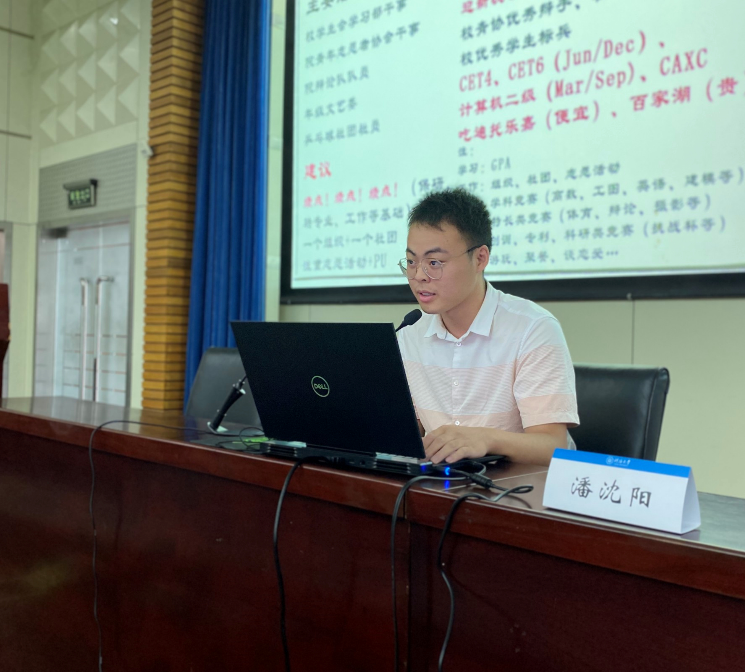 活动首先由16级环工专业潘沈阳做经验分享。潘沈阳成绩优异,综合排名位列全专业第三,获得了优秀毕业生,魅力毕业生等荣誉称号,获得直博资格,在欧洲杯赛程 攻读博士学位。潘沈阳分别以大学4个学年为维度,给同学们提出了建议:他建议同学们在大一重视学习成绩,适当参加学生组织;在大二努力参加竞赛,适当接触科研;在大三确定毕业后的方向,提前了解保研信息。此外,潘沈阳还向同学们介绍了大学四年需要重点注意的课程与资格考试。