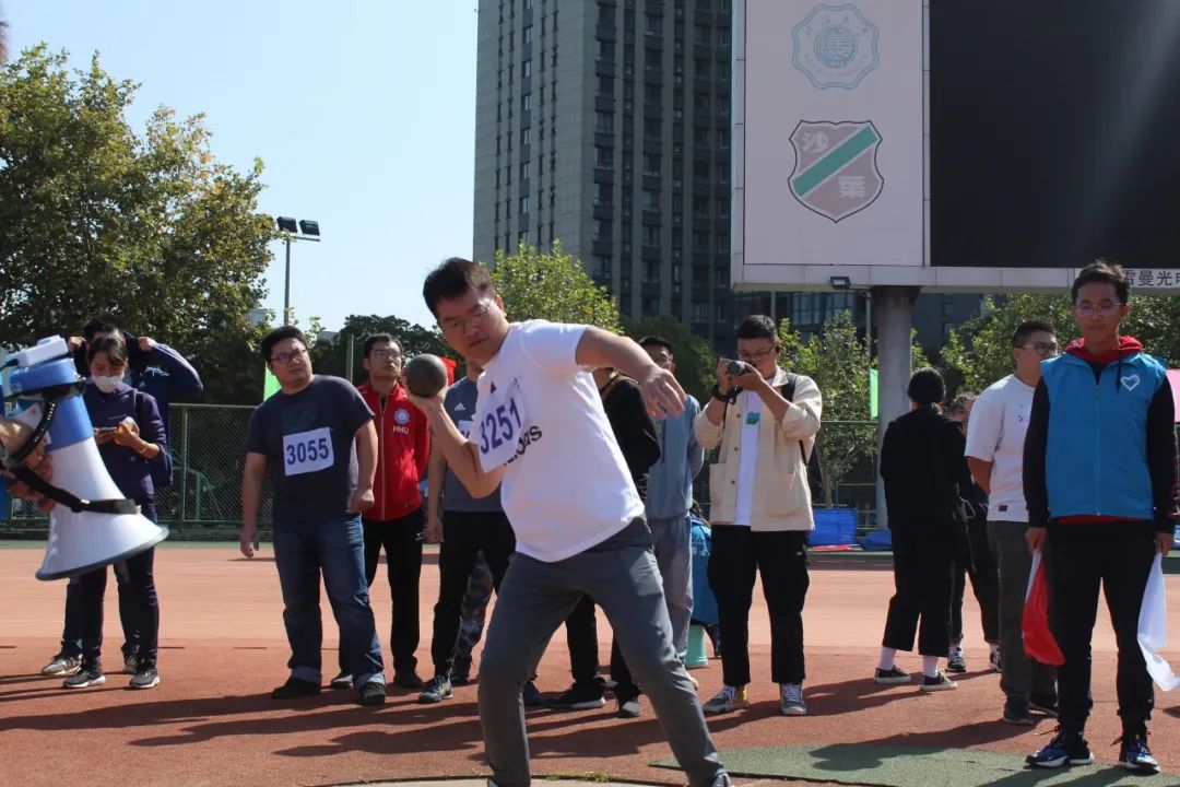 与此同时,在赛场的另一边,教工女子铅球比赛也正如火如荼的进行着。金意倩老师和王洵老师参加了此次比赛。沉重的铅球从她们手上抛出,带出一道道优美的弧线,在草地上留下奋斗的痕迹。