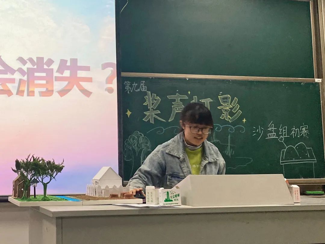 各组同学依次上台答辩,用ppt展示了自己的沙盘材料、制作理念和制作过程。精美的沙盘模型集聚了同学们的心血和对环保工作的追求与认知。通过团队配合和思想碰撞,多元化的沙盘成品让在场的所有人都领悟到了灯与影的结合魅力,也更加意识到环保的实现其实触手可及。