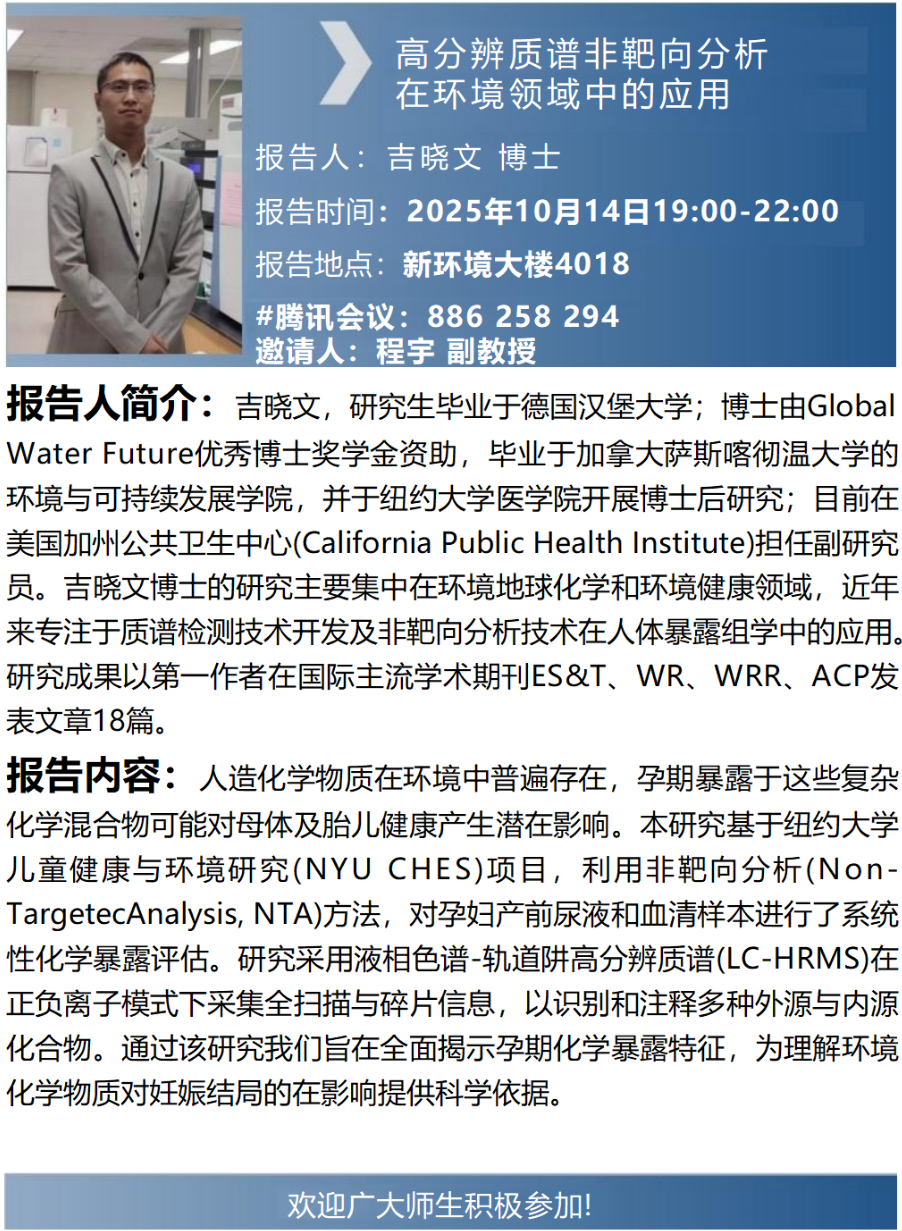 欧洲杯赛程 学术报告:高分辨质谱非靶向分析在环境领域中的应用