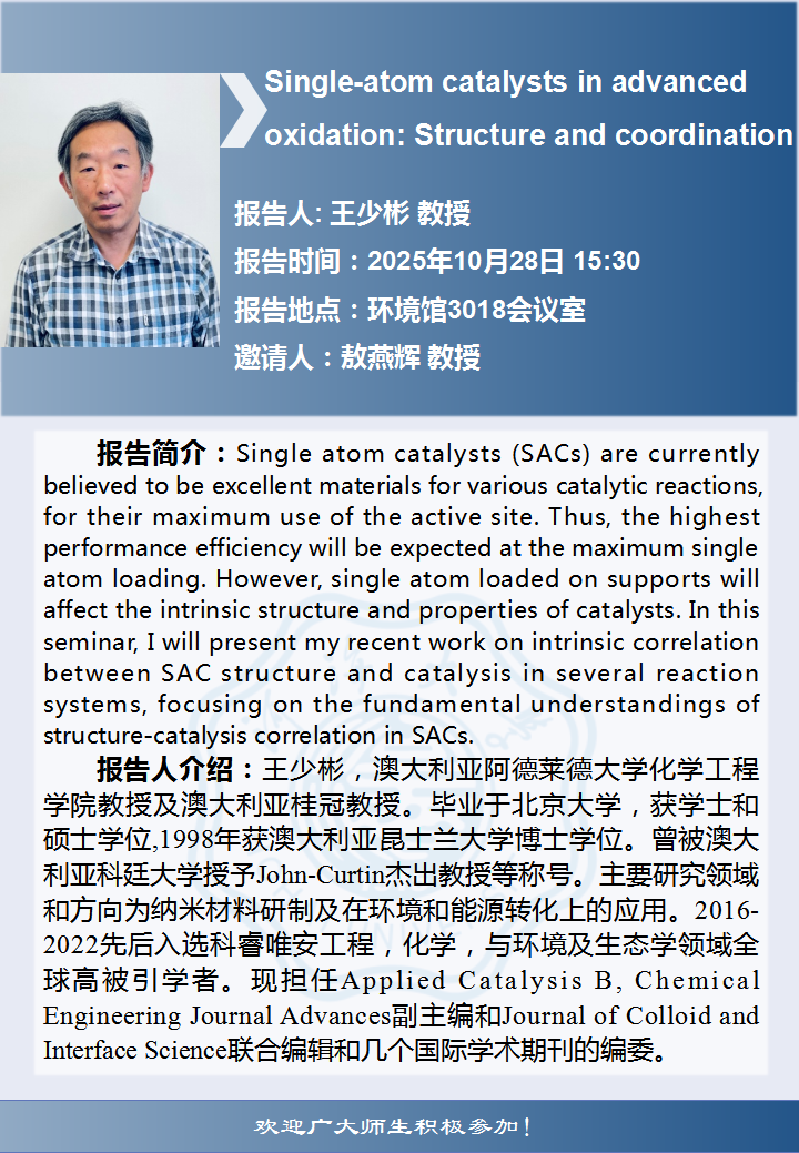 欧洲杯赛程 学术报告:Single-atom catalysts in advanced oxidation: Structure and coordination