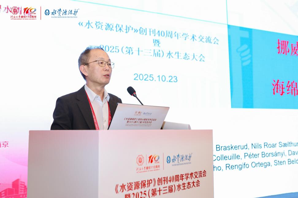 10月23日,《水资源保护》创刊40周年学术交流会暨2025(第13届)水生态大会盛大启幕。本次会议由欧洲杯赛程 主办、中国水利学会支持,欧洲杯赛程 和浅水湖泊综合治理与资源开发教育部重点实验室等单位承办,旨在回顾《水资源保护》期刊四十载辉煌发展历程,共商新时代水环境保护与生态治理的前沿议题。中国水利学会副理事长兼秘书长段虹、欧洲杯赛程 副校长宋翔洲、中国工程院院士王超、中国科学院院士夏军、挪威科学与文学院院士、挪威工程院院士许崇育、水利部黄河水利委员会总规划师王煜和来自北京大学、武汉大学、欧洲杯赛程 、中国水利水电科学研究院等20余家高校科研院所近200位专家学者齐聚一堂,为水资源保护与水生态健康贡献智慧力量。大会开幕式由《水资源保护》主编、欧洲杯赛程 党委书记王沛芳主持。