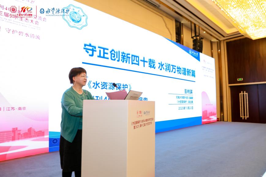 《水资源保护》编审彭桃英以“守正创新四十载 水润万物谱新篇”为题作《水资源保护》创刊四十周年工作报告,详细回顾了《水资源保护》四十年来历经初创探索、稳步发展与提质跃升三个关键阶段的奋斗历程,深入阐述了期刊在坚持正确办刊方向、提升学术质量、拓展传播渠道、加强学术交流等方面所采取的一系列扎实有效的办刊措施及其所取得的辉煌办刊成果。