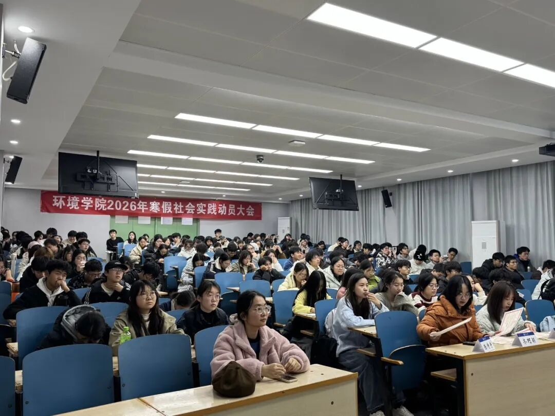 为切实引导环境学子在寒假社会实践中锤炼本领、增长才干,明确实践方向与具体要求,12月19日,我院开展2026年寒假社会实践动员会。本次会议采用线上线下融合模式开展,大会特别邀请25级本科生辅导员陈诗宇老师出席会议,两位优秀代表分享实践经验。